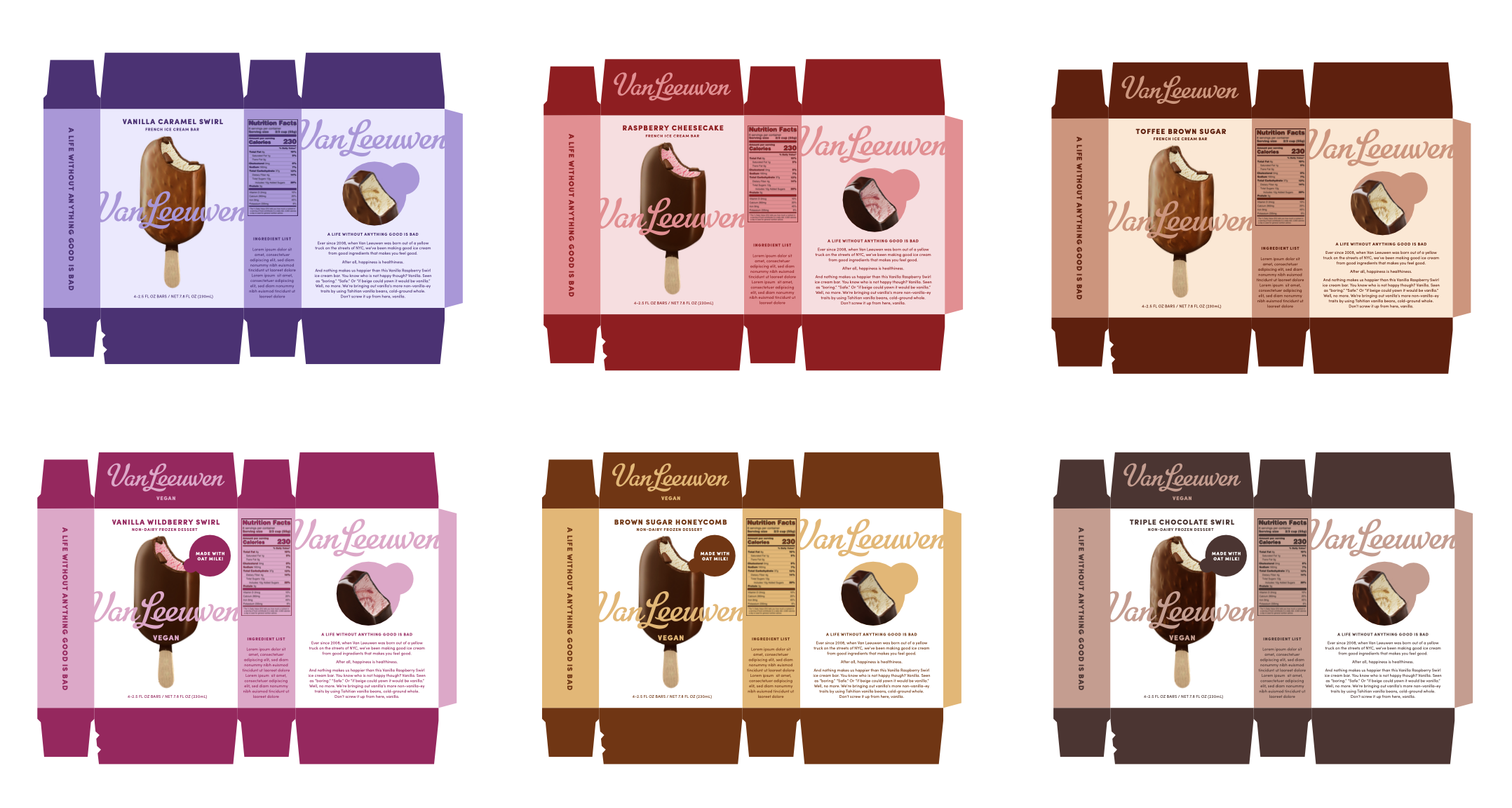 Within the Pentagram team, I worked on the final Identity guidelines as well as the mailer box designs and graphics on the truck. In 2021, Van Leeuwen Ice cream bar packaging was designed by me.